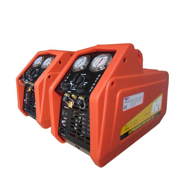 The refrigerant recovery machine is oil-free and lubricated for all refrigerants.